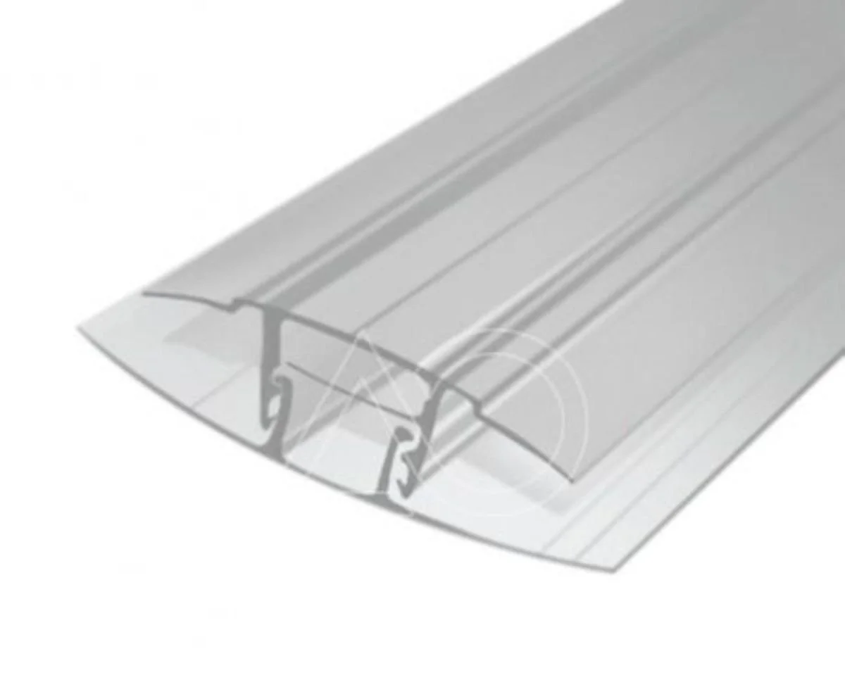 Easy click clear plastic joining profile, suitable for joining Multiwall or solid polycarbonate sheeting between 4mm & 10mm.profile